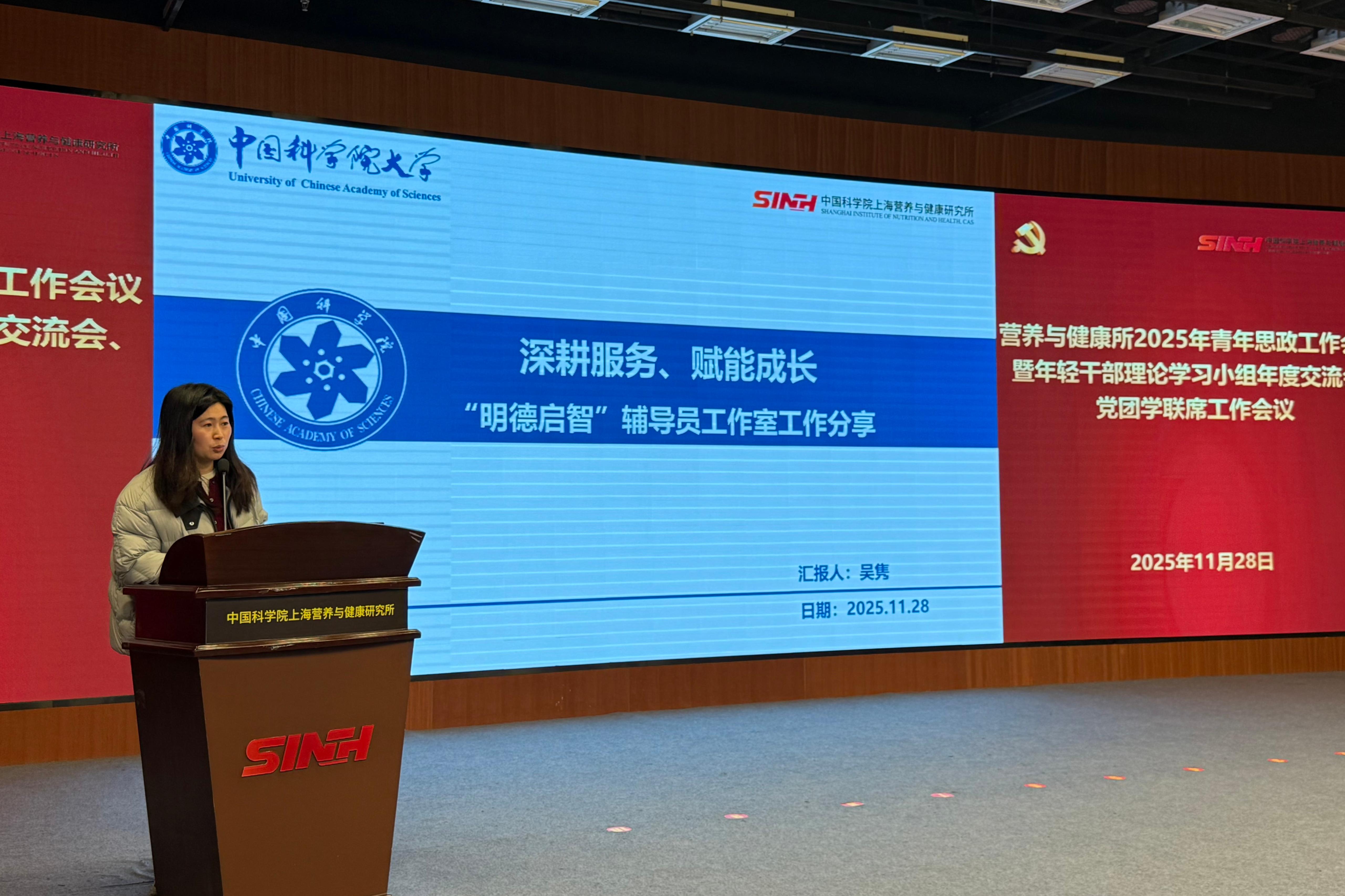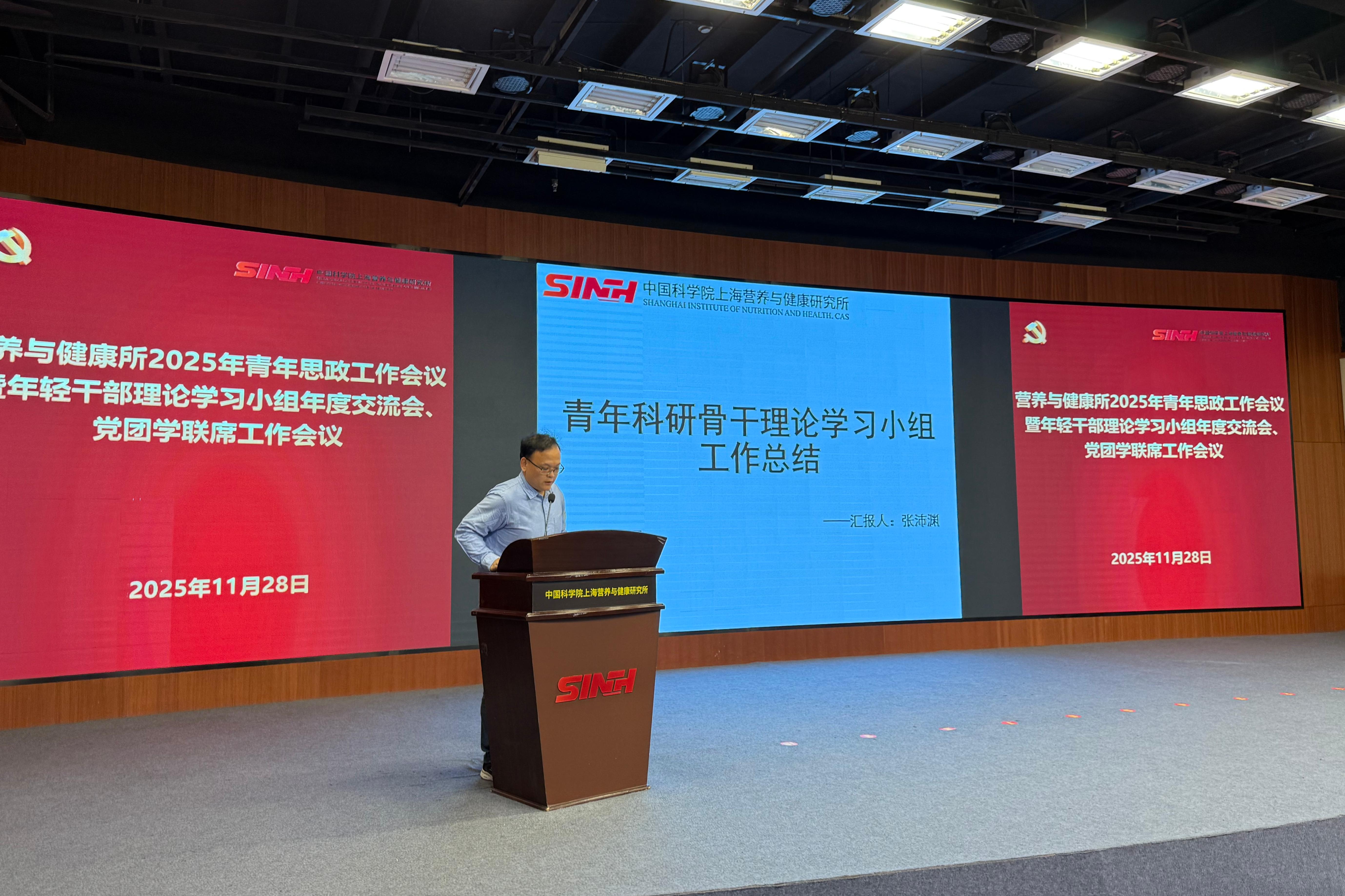 11月28日下午,為進(jìn)一步推動青年干部和科研人員在研究所高質(zhì)量發(fā)展新征程中展現(xiàn)新?lián)?dāng)、實現(xiàn)新作為,中國科學(xué)院上海營養(yǎng)與健康研究所召開2025年青年思政工作會議暨黨團(tuán)學(xué)聯(lián)席工作會議。營養(yǎng)與健康所黨委書記瞿榮輝、紀(jì)委書記曹永、相關(guān)職能部門和黨組織負(fù)責(zé)人、輔導(dǎo)員代表、各支部青年委員、青年理論學(xué)習(xí)小組組長及研究生代表近50人參會。
