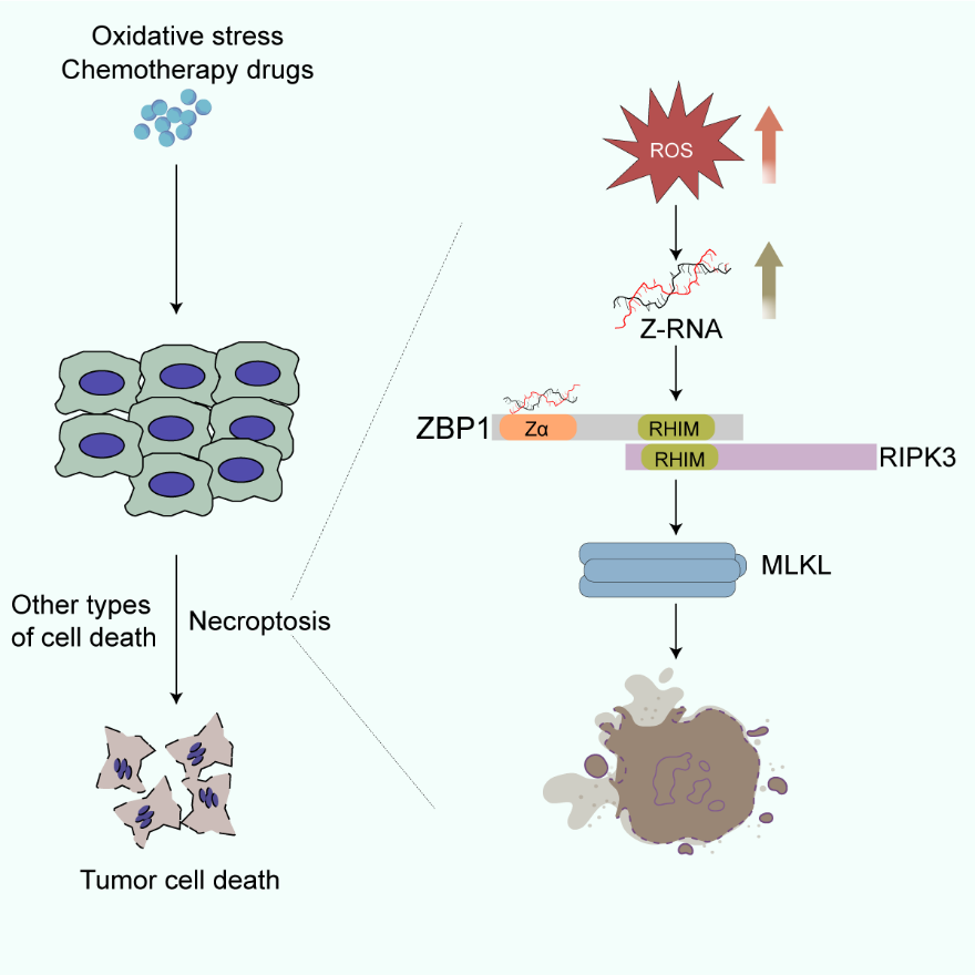 圖注:氧化應(yīng)激誘導(dǎo)的Z-RNA通過(guò)激活ZBP1依賴的程序性壞死增強(qiáng)腫瘤對(duì)化療藥物的敏感性